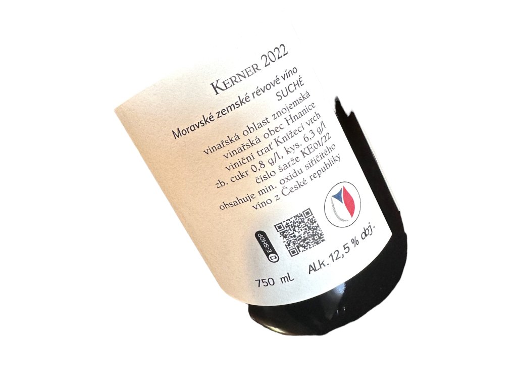 Víno Kerner z ročníku 2022 se prezentuje jako jemně aromatické bílé víno,