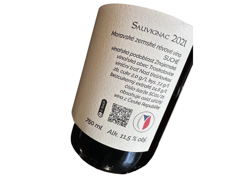 Víno raritní odrůdy Sauvignac ročníku 2021. Víno je suché, kvašené v akátovém sudu.